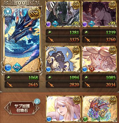 高難度ではこのTA20%バフとヴァルナの召喚効果のTA率30%UPと武器スキルで、TA率合計100%を目指すことが多いです。短期戦では、追撃石のカリュブティスのTA率50%と組み合わせることが多いです。奥義加速、独自枠の追撃、ダメ上限UPも非常に強力です。