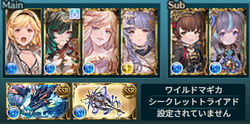 下記は魔星の試練の編成です。開幕ダメージで他属性キャラが落ちてハーゼリーラが出てきます。リルルやハーゼの奥義加速でオリファイのアンリミを早めに起動させます。オリファイの火力の高さのおかげもあって、青箱確定の500万貢献度まで安定して稼げる編成です。