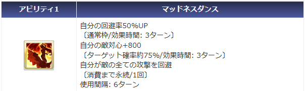 サテュロスは、1アビで敵対心(被ターゲット率約70%×5ターン)を上げられます。ハロウィンマナマルは、敵対心DOWNのLBを2つ持っています。マナマルは、ターン終了時に被ダメなしだと2アビのデバフ付き多段アビダメを自動発動します。