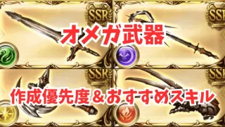 水属性の基礎火力を補いつつ、技巧大の効果量も高いので、2本編成したい武器です。覚醒スキルはアビダメタイプがおすすめで、アビダメタイプ2本でアビ上限50%、アビダメ40%です。終末やオメガのアビダメ上限50%と合わせて、上限100%にきれいに到達します。