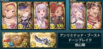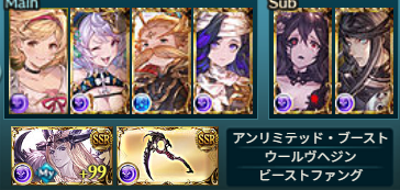 終末は渾身(自由)、フレンドはルシフェルで、クイック召喚はルシフェルです。オメガを奥義ゲージ上昇量UPにすると奥義ゲージまわりが良くなりますが、有利属性与ダメUPがなくなるので天司武器か破壊武器が必要になります。
