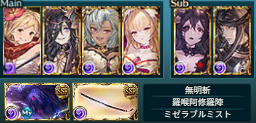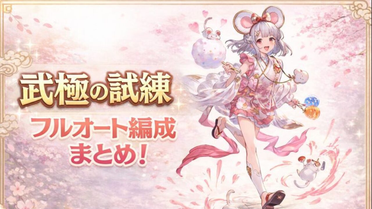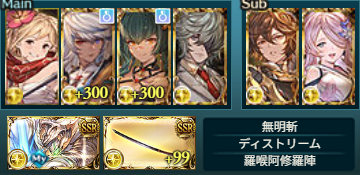 武極の試練の編成でした。奥義5回、40ヒット、無属性150万ダメージのどれを解除して、どれを捨てるかという選択が重要ですね。光属性も闇属性も無属性ダメージに対応できるのが浴衣ビカラとハロウィンサテュロスに限られています。両属性とも奥義編成が比較的ハードルは低いですね。
