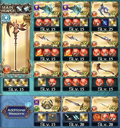 ![]() ミカエル斧 | 奥義効果で全体に20%追撃×4ターンと奥義ゲージ15%UPです。 エクスカリバーを作りたくない場合の選択肢です。 |