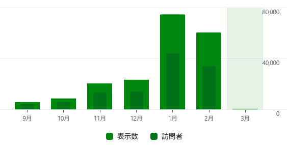 2月のPVは、60,539でした。年末年始があった1月の74,669からは、微減でした。4、5万ぐらいまで落ちると思っていたので、意外と健闘しています。3月は、周年で盛り上がるので10万PVを目標にしたいと思います。