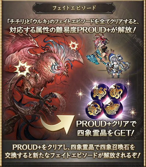 四象召喚石という召喚石の入手と4凸、5凸が可能です。特に短期戦で役立つ性能ですが、必須ではありません。作成ハードルは高めです。次回古戦場の属性の召喚石のみ作成するなどでも十分です。